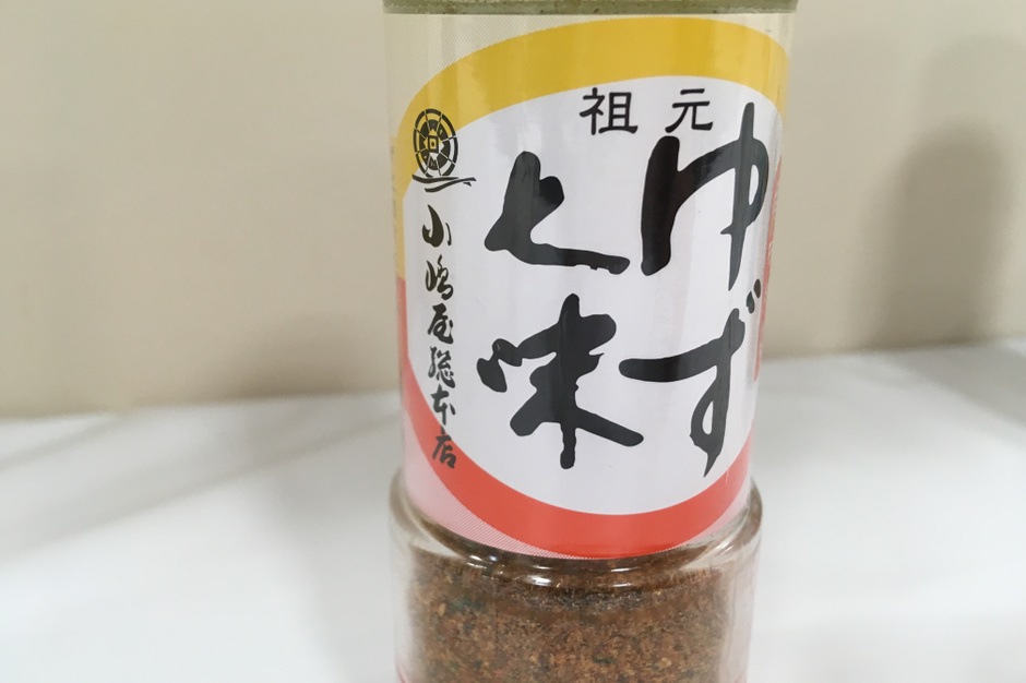 旅行から戻り、乾麺のへぎそばを買い、家で試してみたがあの味には程遠かった・・・。やはり現地で食べるのが一番かと思っていた。有名店が出展していると聞き食べてみることにしました。今回はシンプルにへぎそば1人前!810円。これが高いのか?安いのか?標準なのか?は分からないけどしかたがない。小さな会場に特設の場所を設けていて入り口にはサンプルが並んでいた。前払いでチケット渡され中へ。約10分くらい待っただろうか?「へぎそば」が到着!待ってる間、机にあったゆず七味をなかめていた。このゆず七味も「小嶋屋総本店」製で驚いた。