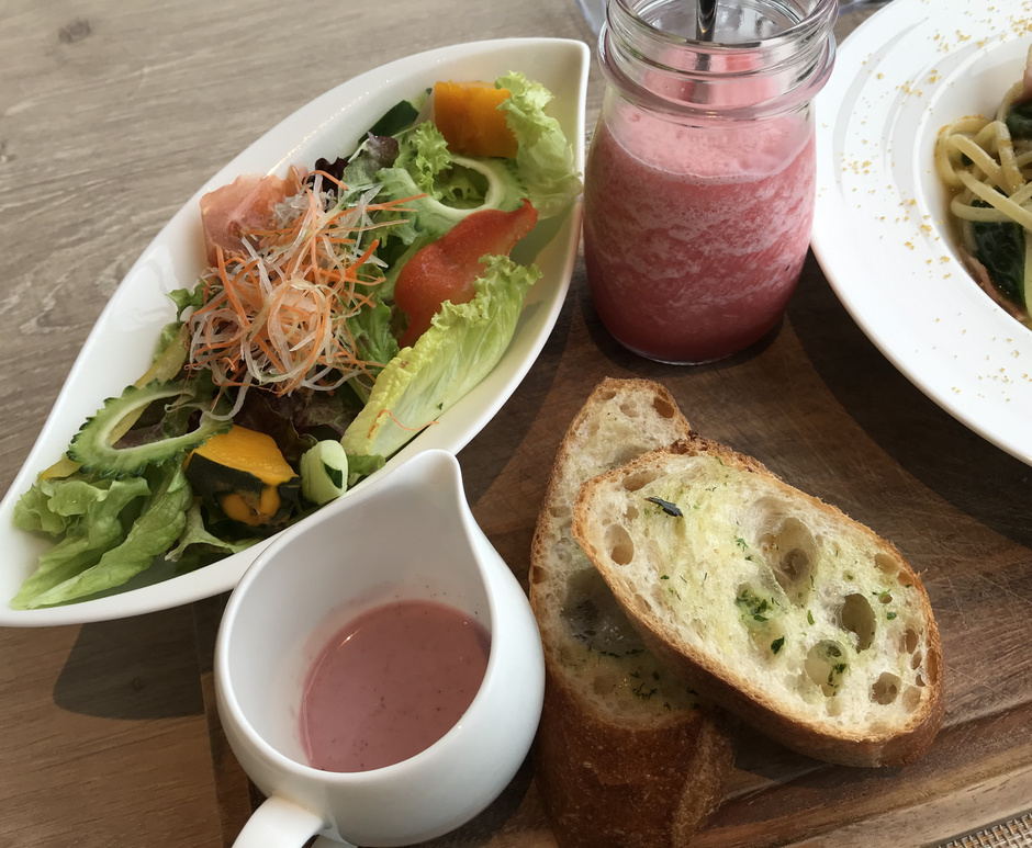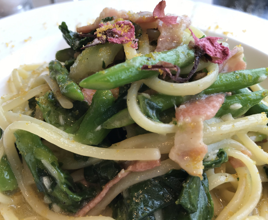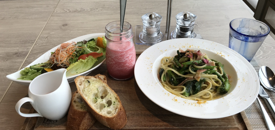 季節のパスタってやつですね。彩りがいいです。パスタはリングイネでボリュームがありますし、プレート全体のバランスがいいですね。