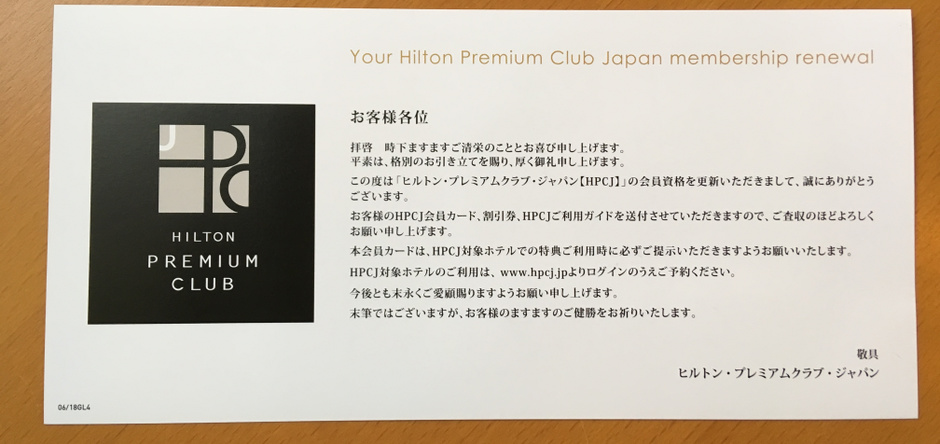 ヒルトン プレミアムクラブ ジャパン HPCJを更新してみた!更新する理由とは?