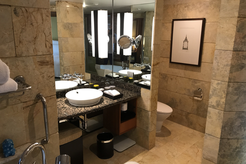 東南アジアで嬉しいバスタブ。歩いた疲れもこれで解消できそうです。大理石に大きなバスタブ、フカフカなタオル。部屋のツアーだけでも楽しいです。