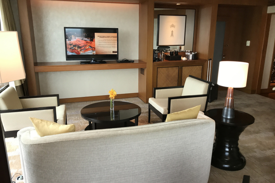 幸運な事にアップグレードにつぐアップグレードでコンラッド・スイートに宿泊することになりましたが、広さ的に1人ではもったいない!やはりカップル・家族向きですね。価格も時期により上下はあると思いますが、250,000円UPでした。タイでこの価格ですから日本で言えば約三倍弱の価値に相当すると思います。