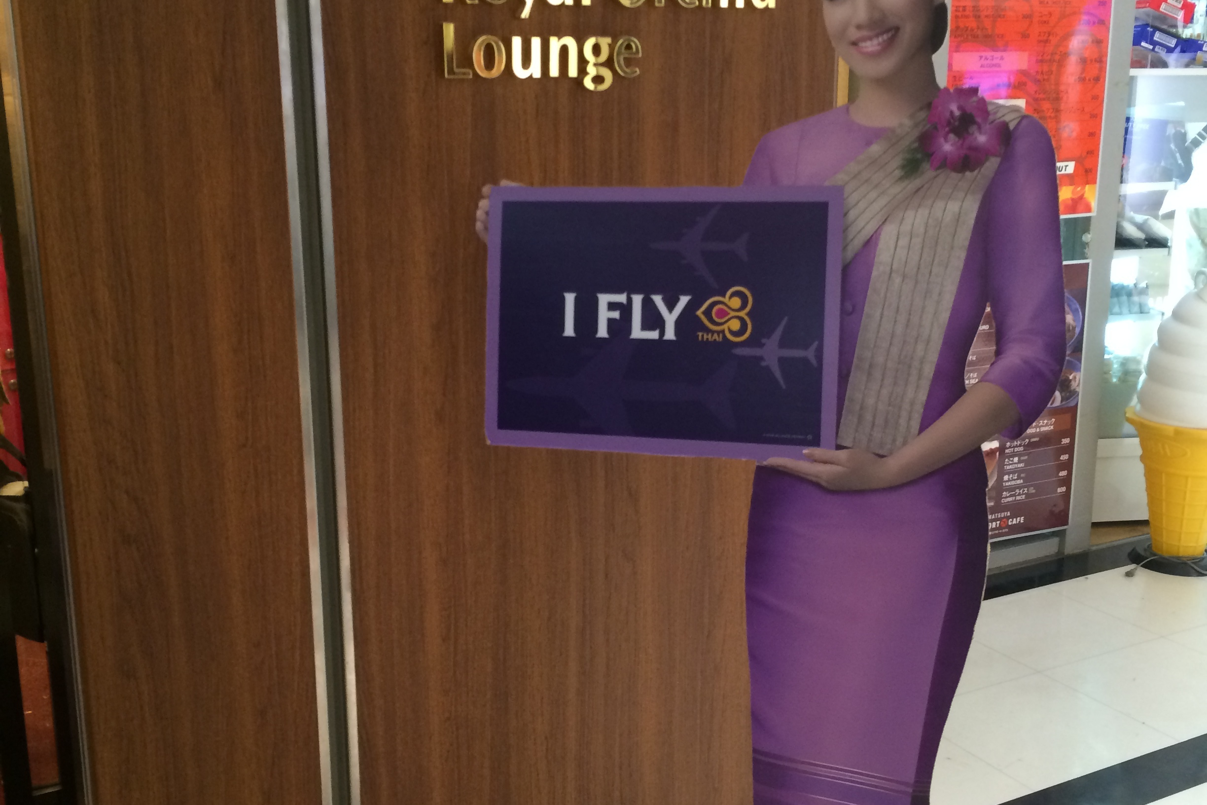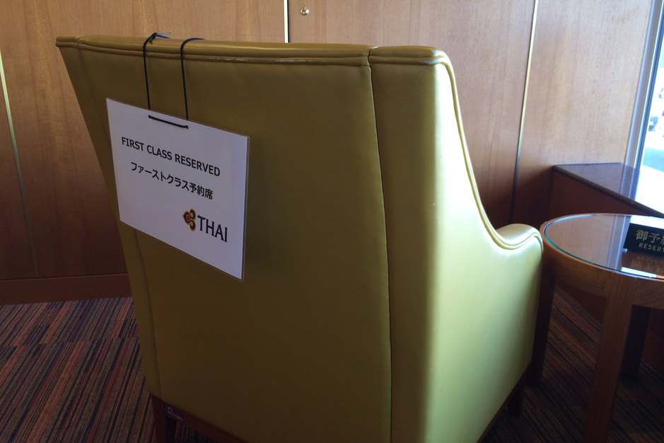 今回は関西国際空港からの搭乗です。なぜかって?それはA380が就航しているからです!カウンターはファーストクラスカウンターで長蛇の列のエコノミークラスの方々を飛び越し保安検査、出国を済ませることが可能です。タイ国際航空のラウンジへ。狭いもののファーストクラス専用の部屋でしばしのくつろぎです。