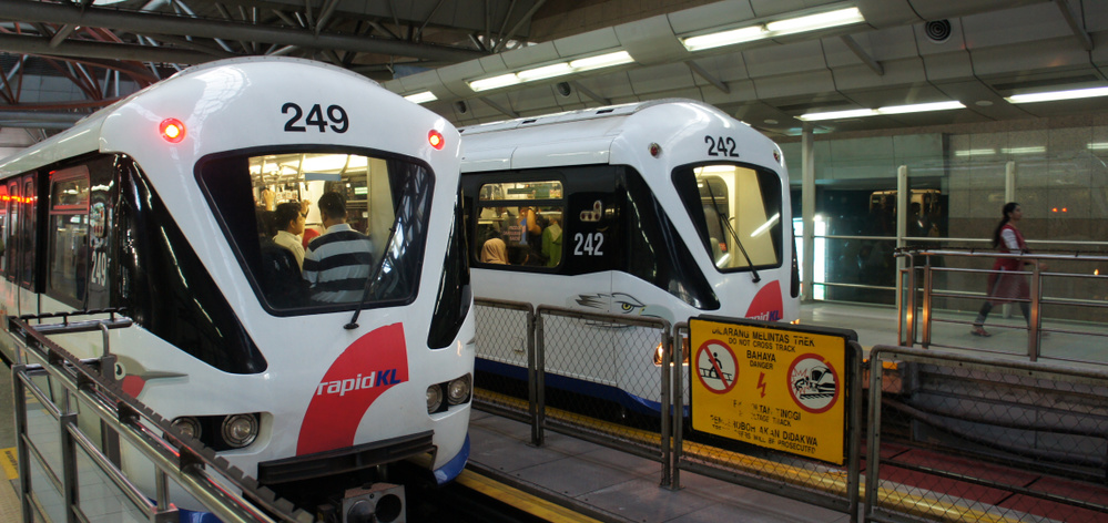 ホームへ行くと通勤のラッシュ時、人も多い。それもそのはず!ここは首都多くて当たり前。電車?を待つと来ました!スタイリッシュな車体「かっこいい」これが普通の電車。日本だったら特急○○でも通用しそう。南国特有の車内は冷房効きすぎだが快適な乗り心地でKLCCへ到着。
